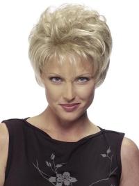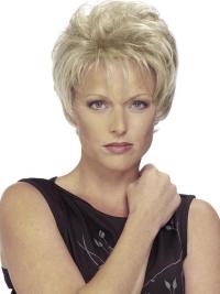 Short, soft layers with a tapered back. Just finger-style and go. French lace front and a monofilament top.