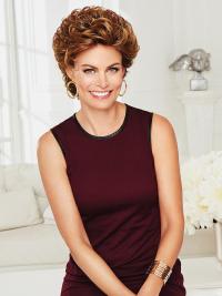 The Naturel Wig has soft, barrel curls that add voluminous, full waves to create a sophisticated, short silhouette. The sheer lace front means fringe can be styled forward or brushed back.