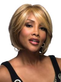 This smooth bob style wig features sleek side swept fringe,chin-length sides that are angled cut up to blend with a short, neck hugging nape. The lace front extends ear to ear to give you the most realistic front hairline ever.