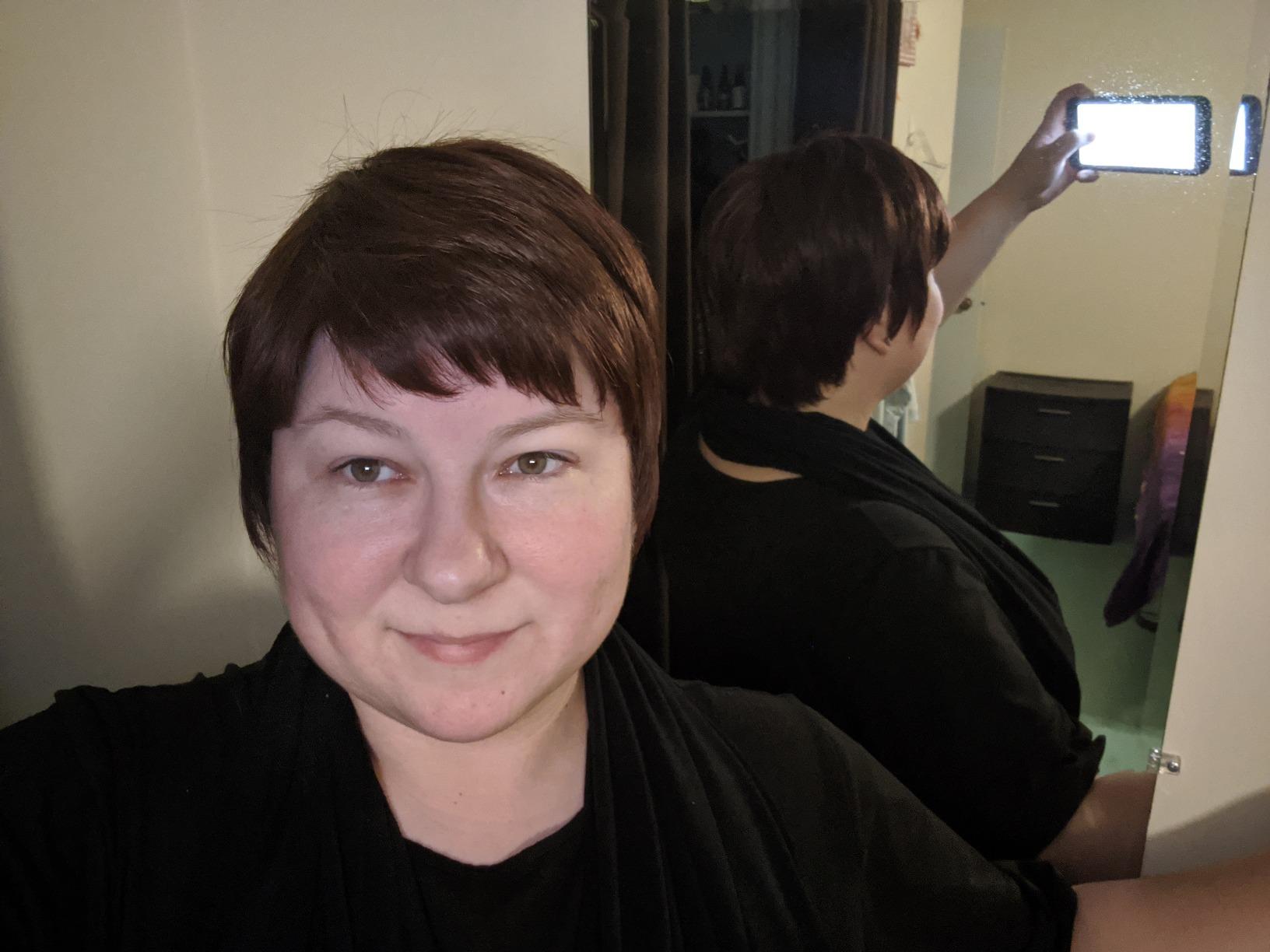 2) Brush your own hair back; securing longer pieces with a hair pin and place a wig cap over your head (keeps the wig securely in place.)
