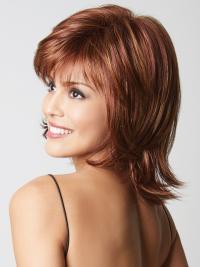 This is a mid-length, layered shag cut with a wispy bang. The traditional cap construction is durable and helps maintain the natural volume. Wear it behind the ear or toward the face – no matter how you choose to wear it, you'll look polished. The ready-to-wear synthetic hair looks and feels like natural hair. And the open wefting in the cap creates better air ventilation, which provides more coolness on the scalp. It’s breathable and lightweight for a more comfortable fit.
