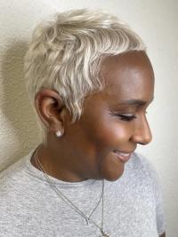 The fringe measures has a fine density. The back of the wig has a very subtle, choppy effect, which you can tousle up slightly by simply scrunching up with your fingers. The nape blends perfectly into your nape. A short nape gives a lovely, feathered effect to the finish of your style.
