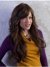 This wig is a super long, sexy wig that's deliciously full of body. It has a soft bang that can be worn forward or to the side.