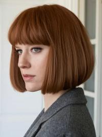 The modern blunt bob with full fringe is here to deliver. This hairstyle is complemented by sharp edges, full bold statement cuts captivating ends, and sharp structure. The stand out captivating youthfulness is provided by a full fringe hairstyle.
