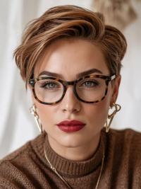 The form is more of a classic pixie, although the color placement gives the form depth and brightness on the face. The lights are blended to the extent that they resemble the sun rays on the hair and provide a natural uplift to the whole appearance.