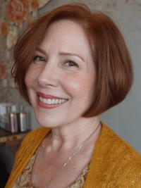 This vibrant copper bob features soft layers that add movement and dimension to the hair. This cut works beautifully on oval and heart-shaped faces, highlighting the cheekbones. The rich copper color enhances warmth, making it a great option for those looking to revitalize their look.