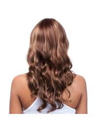 The wave fringe then perfectly blends into the soft waved curls at the sides. The sides gradually get longer until the back length. This subtle design creates a silhouette that is flattering to all face shapes. The curls are large, soft ringlets that mix with gentle soft waves. This piece will loosely hang below your shoulders, creating a trendy and glamorous look.