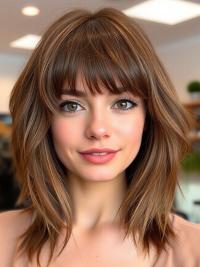 This delicate and romantic look accentuates the face-framing layers and this style is the height of subdued framing grace.