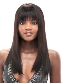 Yaki Black With Bangs Yaki Long And Cheap Synthetic Wigs